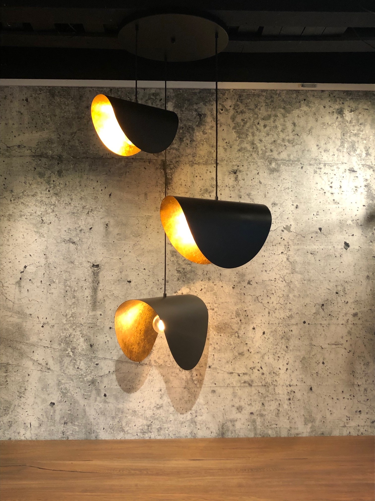 Hanglamp vide, plaat Ø50cm + 3x schelp S-M-L langwerpig